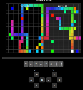 The XY and ZW maps respectively display the snake's projection on different planes.